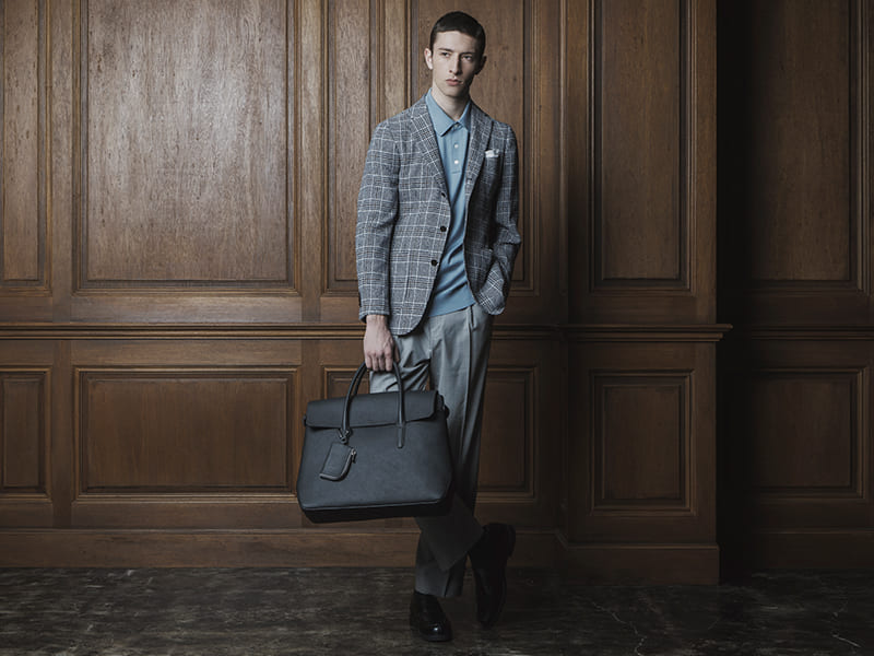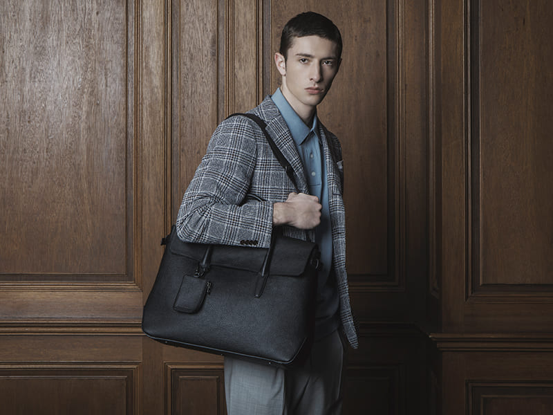 エンボスレザーが上品な印象を与える2wayフラップトート。洗練されたフラップデザインが落ち着いた雰囲気を醸し出し、ビジネスシーンを格上げします。PCポケットやペンホルダー、カードスリットを備え、機能性も充実。さらに、付属のショルダーストラップで肩掛けも可能なため、シーンに応じた使い方ができるビジネストートです。ミニポーチが付属します。