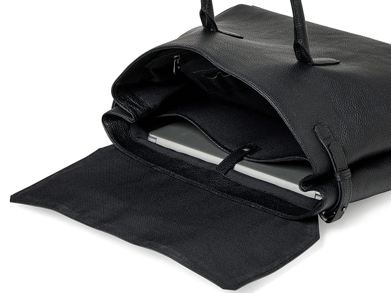 14インチまで対応するPCポケットを備え、大切なデバイスをしっかり保護。PCを仕分けて収納できることで、メインルームは広々と使え、より自由度の高い快適な使い心地を実現します。機能性と利便性を兼ね備えた収納設計です。