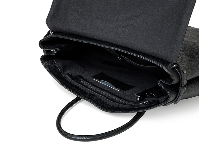 貴重品や小物をすっきり収納できるファスナー式ポケットに加え、ペン差しやカードポケットも配置。ビジネスシーンに求められる高い仕分け性能を誇り、スマートで機能的な収納を実現します。