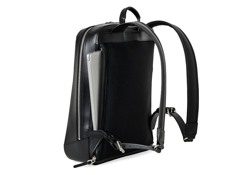機能的なメッシュ仕様の背面には13インチ対応のPCルームを備えており、スマートに持ち運びが可能です。ビジネスからカジュアルまで、これひとつであらゆるシーンに対応します。