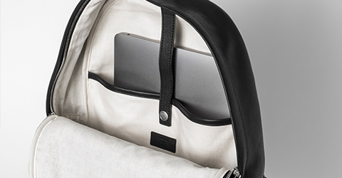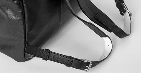BLACK COLLECTIONからバックパックが登場。使用する染料染めのキップレザーはモチっとした触感と、革らしい表情、光沢を感じられるエルゴポックの中でもワンランク上のもの。ブラックボディにちらつくホワイトの配色がアクセントに。品がありながら、ボディに芯材を使用せず革なりのドロップ感を表現したこなれた雰囲気のバックパックです。