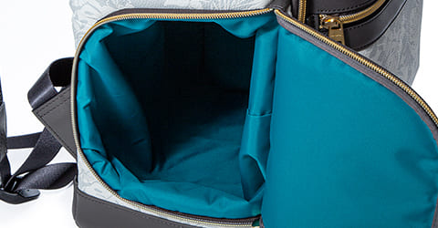 正面左のサイドポケットからシューズルームにアクセスします。メインルーム内でセパレートされ衛生的です。シューズルームには撥水効果のあるナイロン生地を使用しているのでケアも簡単です。