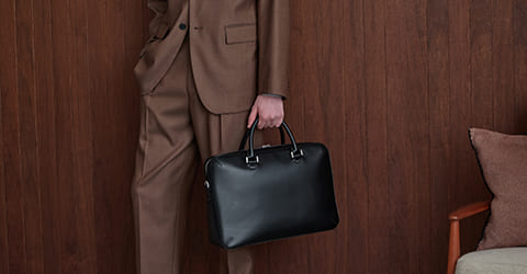 ビジネスシーンで万能に使える、ベーシックタイプのブリーフケースをラインナップ。A4書類、PC+αが余裕を持って収納できる容量を誇ります。こだわりの本革を使用し、スムースレザーからエンボスレザーまで様々な素材からお選びいただけます。ショルダーストラップが付属する2way仕様で、荷物の量が増えても安心。メンズスタイルに欠かせないビジネスバッグをご覧ください。