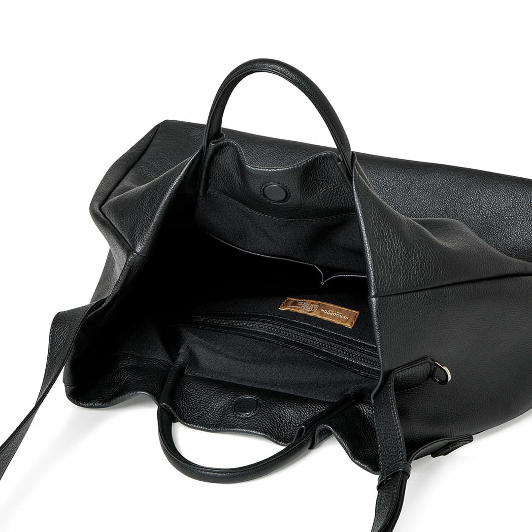 ソフトシュリンクレザーの2wayトートバッグ。余計なパーツの切り替えを極力減らし、やわらかく上品な印象に仕上げました。大ぶりなサイズながら、かっちりしすぎず、洋服とのコーディネートを幅広く楽しめます。たっぷりの収納力に加え、内装には計5つのポケットを備え、スマートに整理できるのでお仕事用にも最適です。シーンやスタイルに合わせて、ハンドル&ショルダーの2wayで自由に楽しめる、実用性とデザイン性を兼ね備えたバッグです。