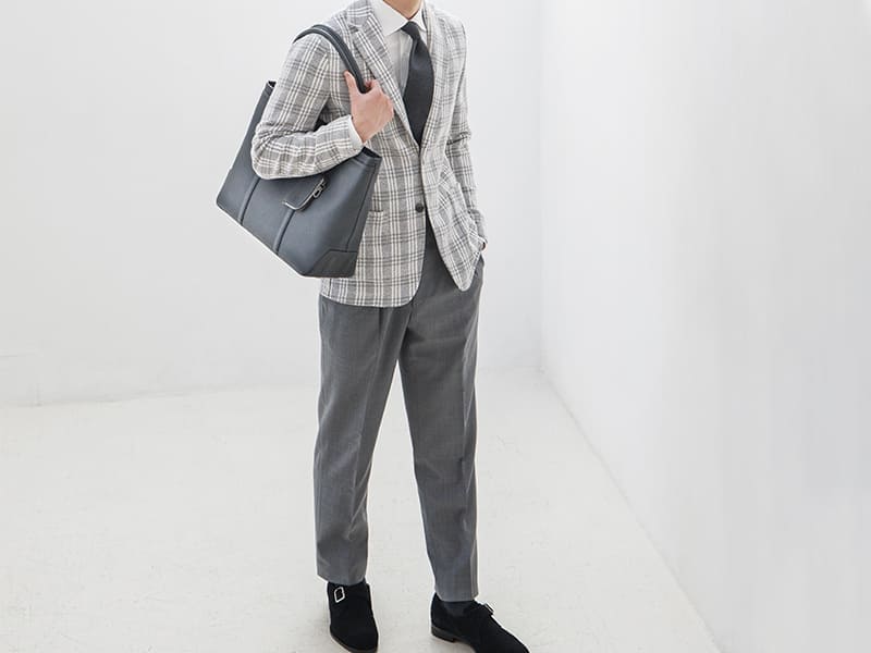 肩掛けタイプのビジネストート。大き目のあおりポケットを設け、スマートフォンやカードケースの出し入れがスムーズ。ビジネスシーンでの使い勝手を考え、内装にも細かな収納を完備。AirPodsなどのイヤフォンやカード、コイン、インテリジェントキーなども収納できるミニポーチが付属します。