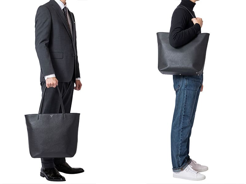 装飾を施していないシンプルなルックスに機能性を詰め込んだトートバッグは、スーツスタイルでもカジュアルスタイルでも着用していただけます。