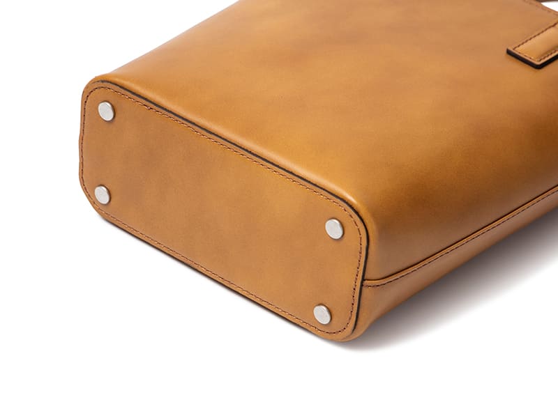 カジュアルダウンしたサイズながら、内部の芯材や底鋲でフォルムを作ったしっかりした構造。自立もしてくれます。