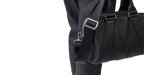 付属のショルダーストラップは使用しない時も本体に収納しておけるように、折りたためる薄く柔らかい素材を使用しました。荷物が増え肩掛けしたい時も対応しやすく、付けたままでもさほど邪魔にならない軽いストラップです。