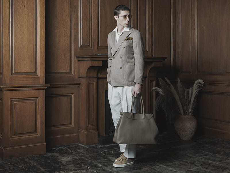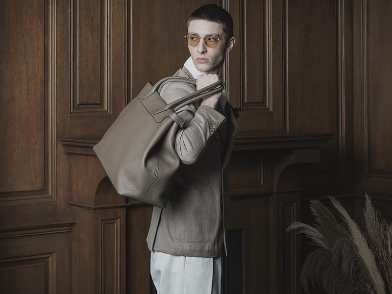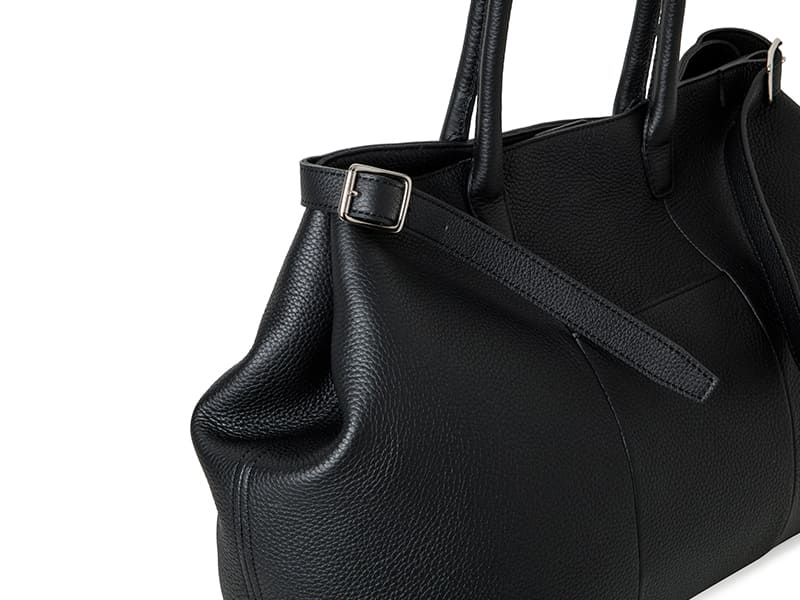 肉厚でありながら、しっとりとなめらかな手触りが魅力のトリヨンラグーン。自然に入るシワさえも、美しい表情として楽しめる特別なレザーです。その上質な風合いを最大限に引き出すデザインに仕上げたトートバッグは、持つだけで洗練された印象を演出します。