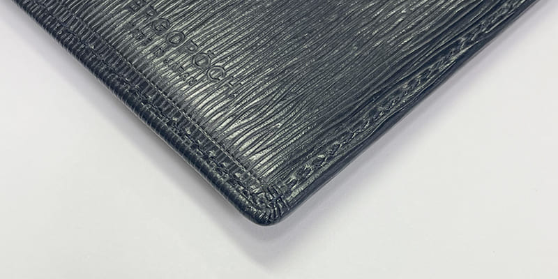ワキシングレザーの革小物の角に見られる放射状のヒダ。これをキメ細やかに寄せていく技術を「菊寄せ」といいます。ここを見れば革小物の良し悪しがわかる、ともいわれる生粋の職人技であり、日本の繊細なものづくりの代名詞ともなっている技術です。その他、見えない部分にも職人技術がたくさん詰め込まれています。