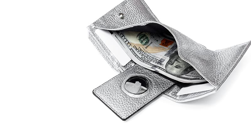 内装はスリットに紙幣を折らずに収納。3つあるカードスリットにはAirTagカードが収納できます。