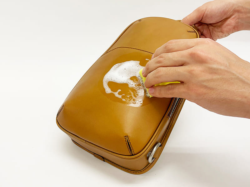 表革用の洗剤です。革のシボ、シワや毛穴に溜まった汚れも「泡クリーニング」により浮かせて落とします。スポンジでしっかり泡立ててから使用します。