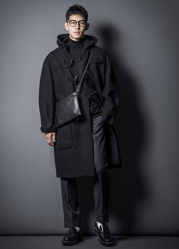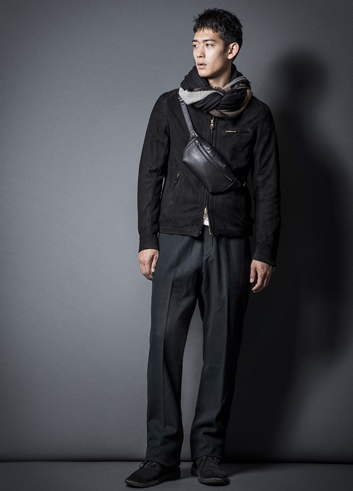 ベルトの着脱、口紐の締め方で表情を自在に変える巾着バッグ。シワの入るデザインはコシ、光沢のあるレザーに好相性。モノトーンスタイルに取り入れるとリラックス感を生み出すと共にレザーの表情が際立ちます。