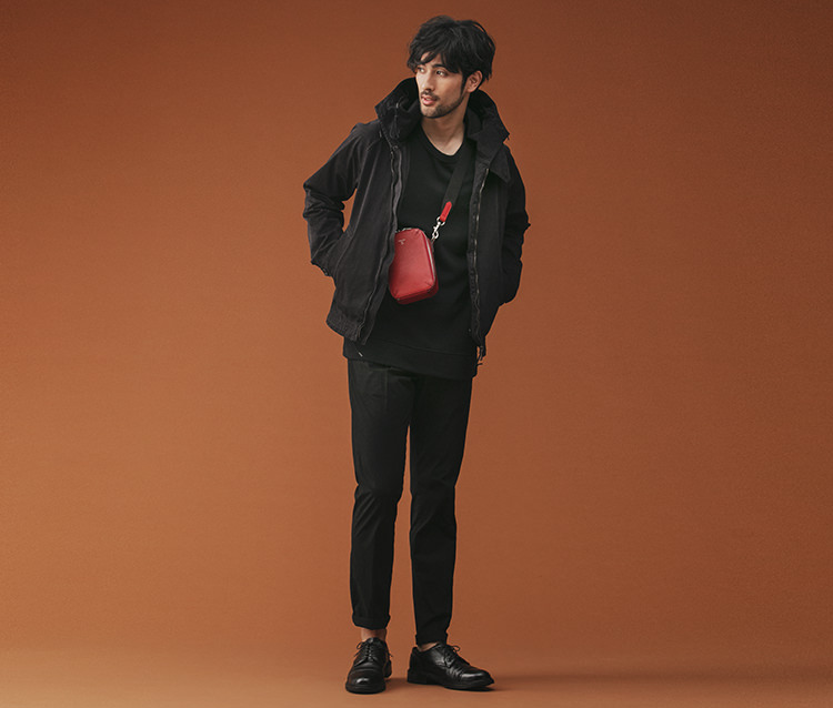 上品なスエードブルゾンやニット、さらにちょっとモードなコートが主役の装いまで大人のあらゆる休日スタイルに軽やかにフィットします。また、クラッチ本来の使い方に加え、斜め掛けやハンドル持ちも可能。それぞれ異なる印象を演出できます。
