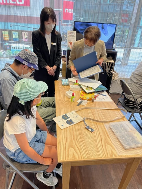 8/5(土)阪急メンズ大阪で、夏休み地域の皆さんが楽しいクリエイティブな体験をする機会として、革パーツデコレーションバッグ作りワークショップが開催されました。参加者は革パーツを組み合わせて、オリジナルのバッグをデコレーションしました。