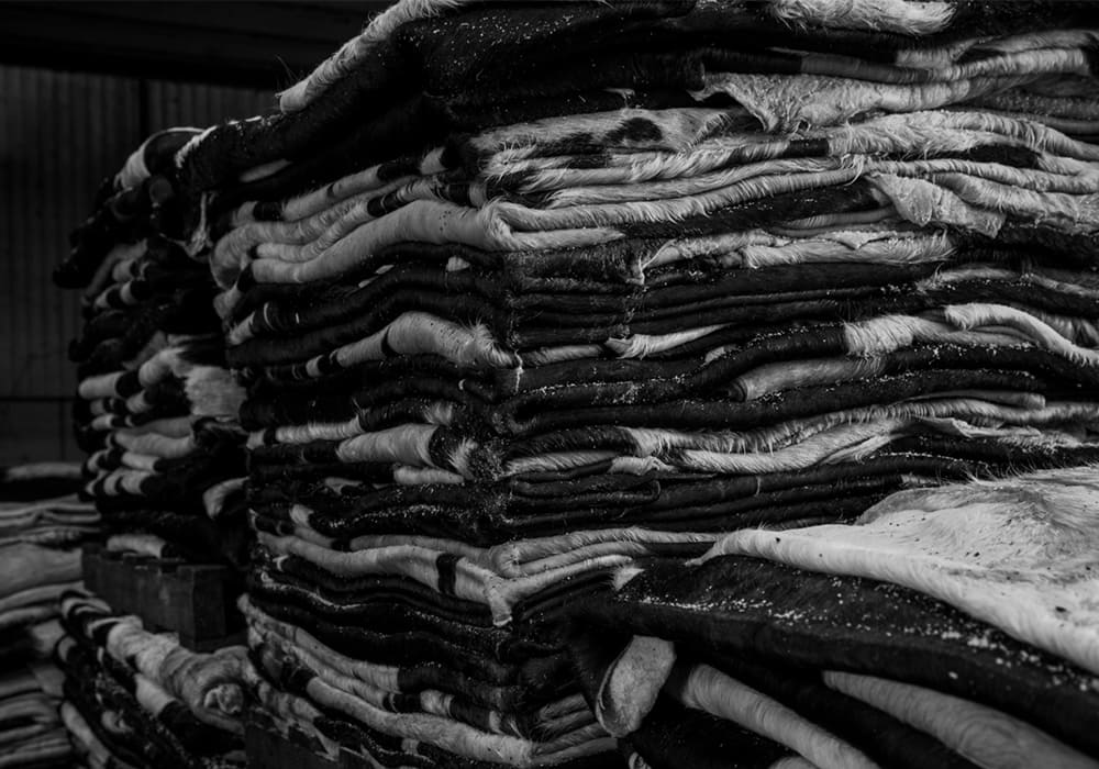 タンナーに届くのは食肉加工の副産物として出た牛皮です。毛付きのまま防腐処理がされた状態で届きます。そこからなめす前の下準備として、石灰を用いて脱毛し、その他不要な部分を取り除き皮を整えます。