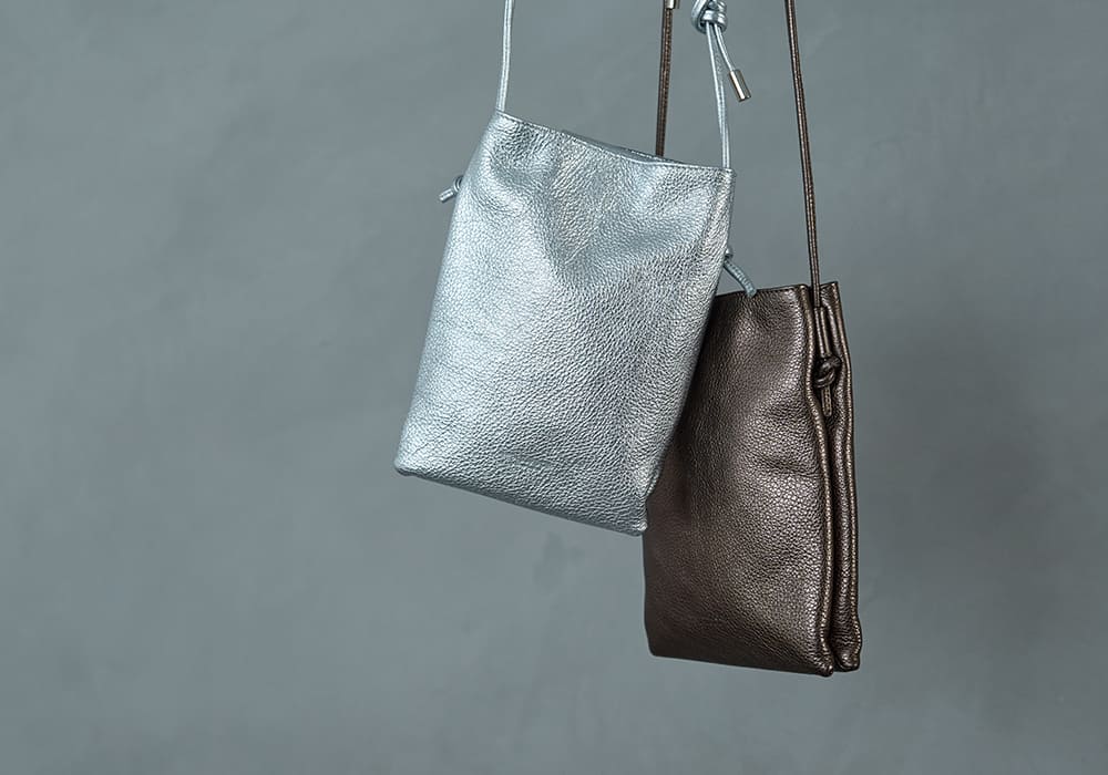 ドレープの入りがきれいなミディアムサイズの【TC-AS】。ストラップの長さ調整域が広く、持ち方をアレンジできます。ストラップの着脱は差込式バックルのためアウター着用の際も着脱にストレスを感じません。